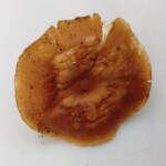 Der Hut ist hellbraun-rötlichbraun, feucht glasig, hygrophan und mit 2-5 cm recht klein. Das Fleisch ist dünn, wässrig, elastisch. Die Lamellen sind fast frei und üblicherweise weißlich-cremefarben, aber es gibt auch gelbe Variante. Eine solche gelbe Variante haben wir im Garten. Manche trennen sie als eigene Art Gymnopus ocior ab.