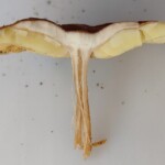 Typisch für die Gattung der Rüblinge ist der Stiel außen knorpelig und innen weich, wattig hohl. Er fasst sich an wie ein kleiner hohler Gummischlauch. Er ist hellbraun, glatt speckig glänzend, mit hellerer Spitze, schlank und wattig hohl.