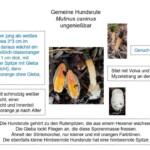 Die Hundsrute gehört zu den Rutenpilzen, die aus einem Hexenei wachsen. Die Gleba lockt Fliegen an, die diese Sporenmasse fressen. Sie ähnelt der Stinkmorchel, nur kleiner und mit orangen Farbtönen.
