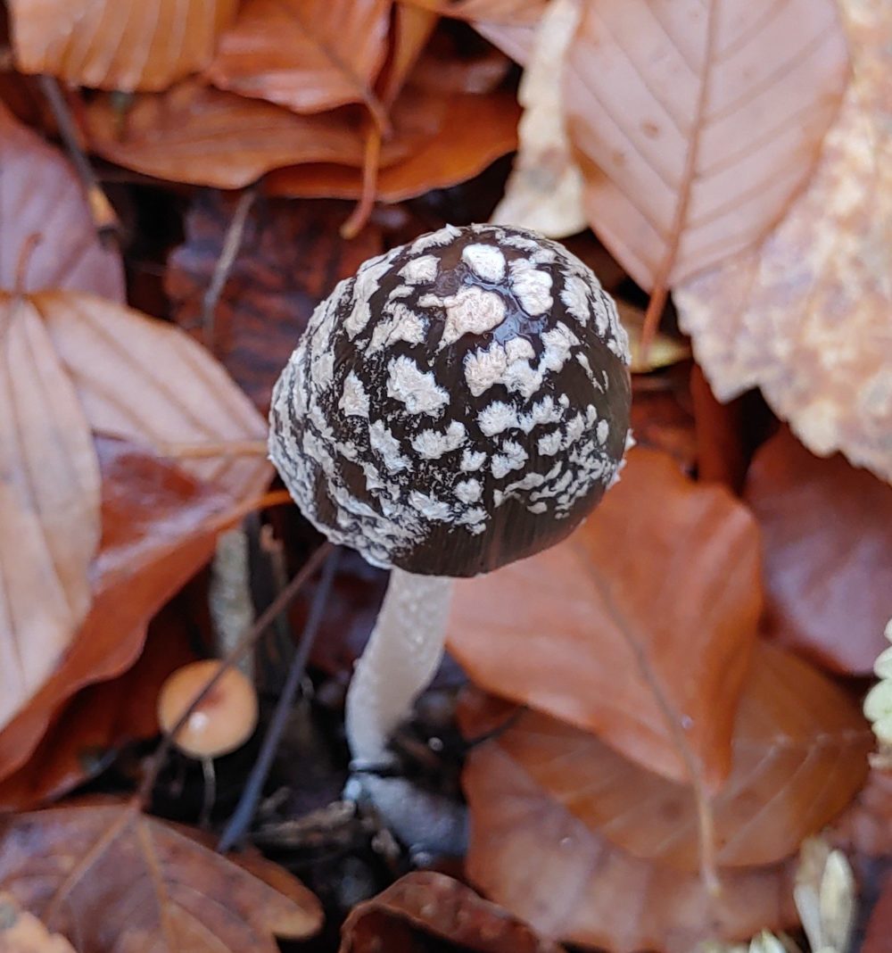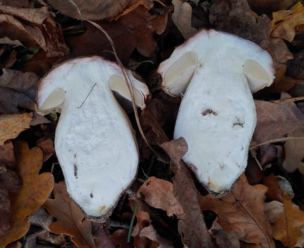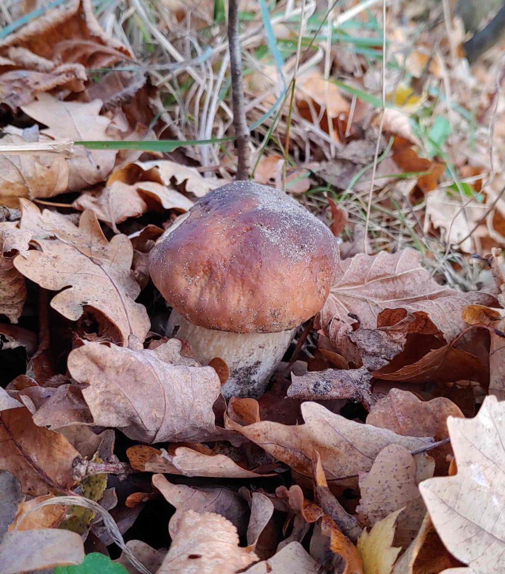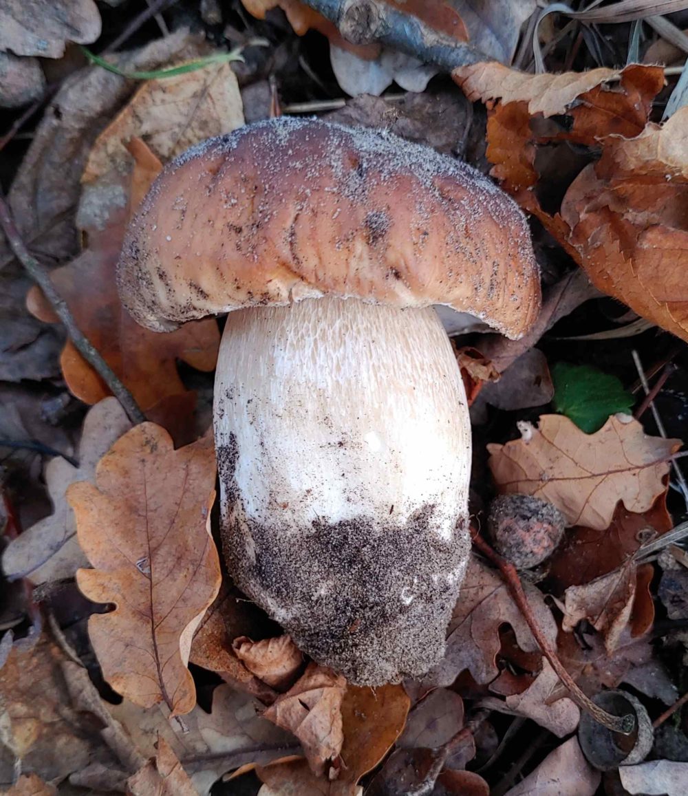 Anfang November finden wir dann auch den Gemeinen Steinpilz mit dem typischen weißen Netz an der Stielspitze, dem weißlichen Rand am Hut und der bräunlichen Zone unter der Huthaut.